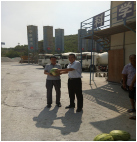 入伏以來,我省各地驕陽似火,氣溫節(jié)節(jié)高升,直逼40度。7月25日上午,陜西省華源建筑工程有限責(zé)任公司工程部周部長一行深入公司所屬海林御苑項目部、華原西道項目部以及塑鋼窗廠、攪拌站等項目部、廠、站,代表公司慰問奮戰(zhàn)在高溫環(huán)境下的一線人員,為他們送去西瓜和公司的濃濃關(guān)愛,送去一抹綠蔭,送去一絲清涼。